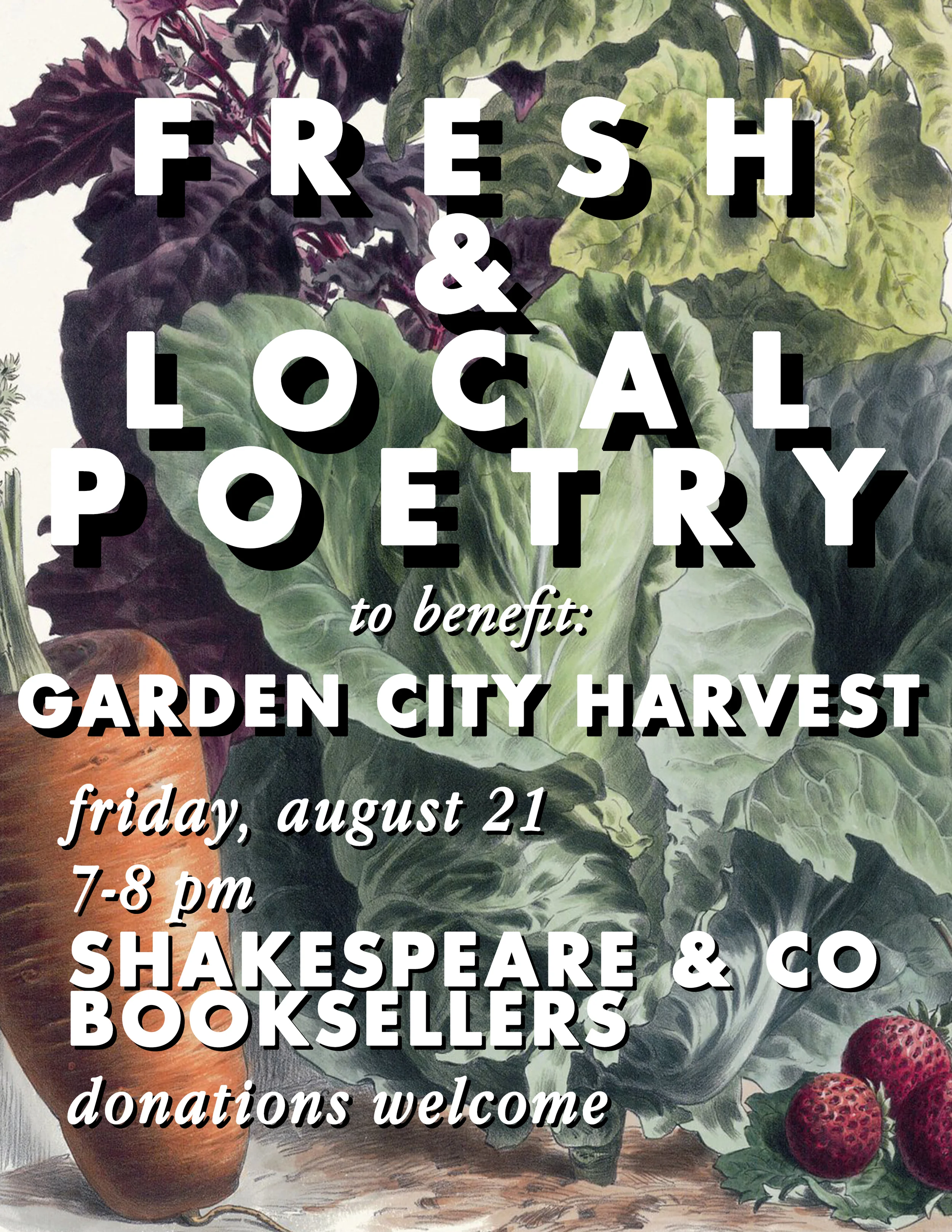 Fresh and Local Poetry is a reading featuring poets of all ages from the Missoula community. The goal of this event is to raise money for Garden City Harvest of Missoula. Donations are very much appreciated.